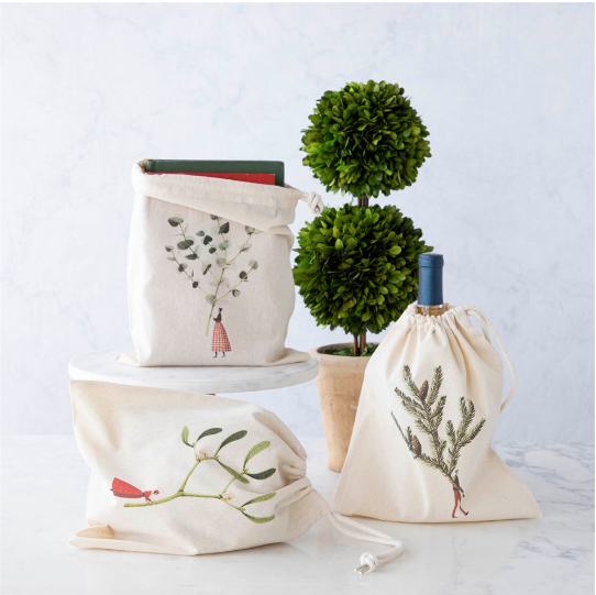These multi-purpose, drawstring bags are not only beautiful, they can be used for just about everything. Featuring art by Laura Stoddart, their uses are endless, including use as sustainable gift bags, protection for your clothes and shoes, luggage organization, storage of special items, crafting materials, and more. They are great gifts in themselves.