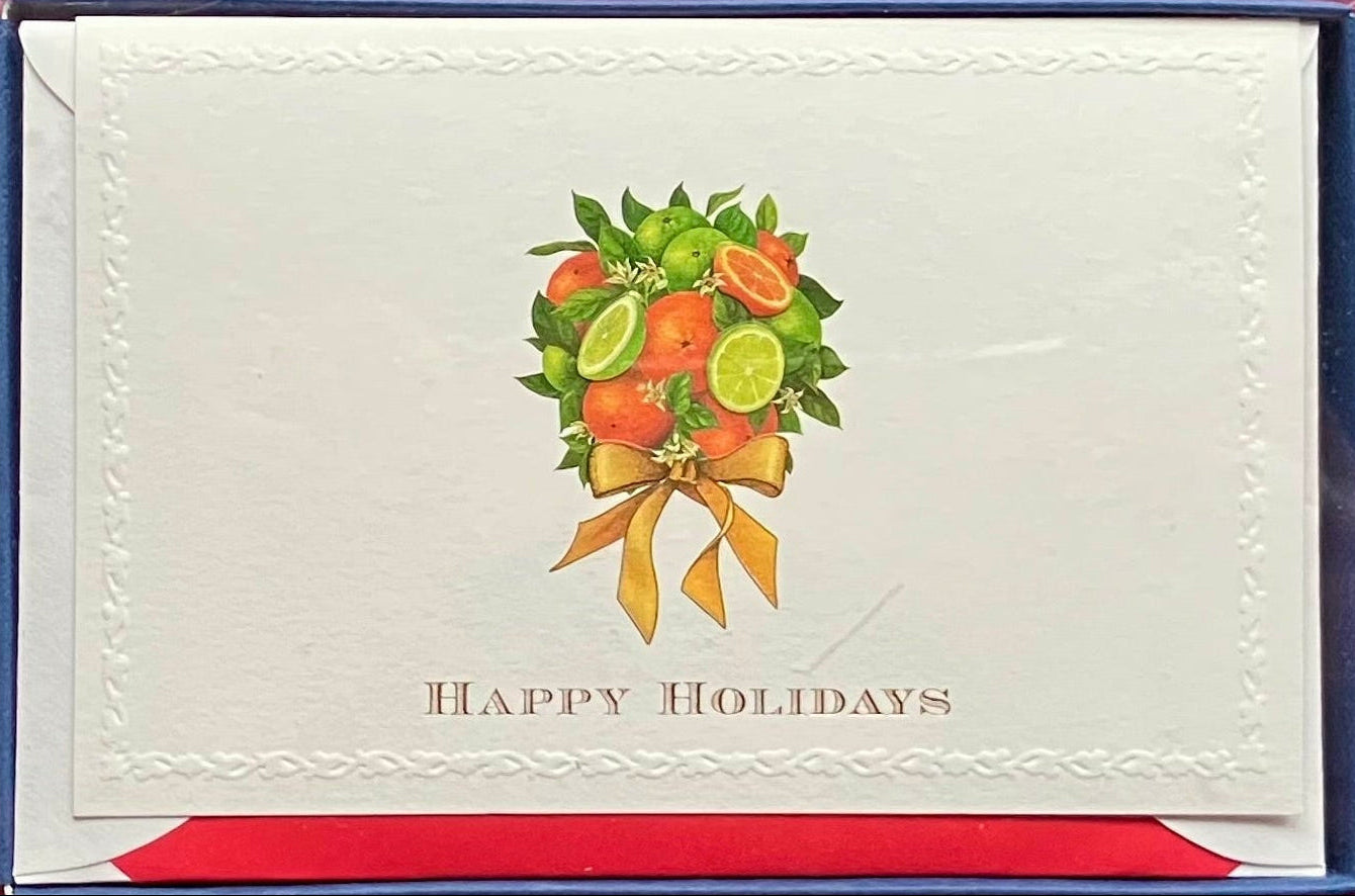 Send warm wishes with this elegant holiday stationery handcrafted entirely in Florence, Italy. Each card and envelope is meticulously crafted with gold foil stamped highlights and a delicately embossed border.