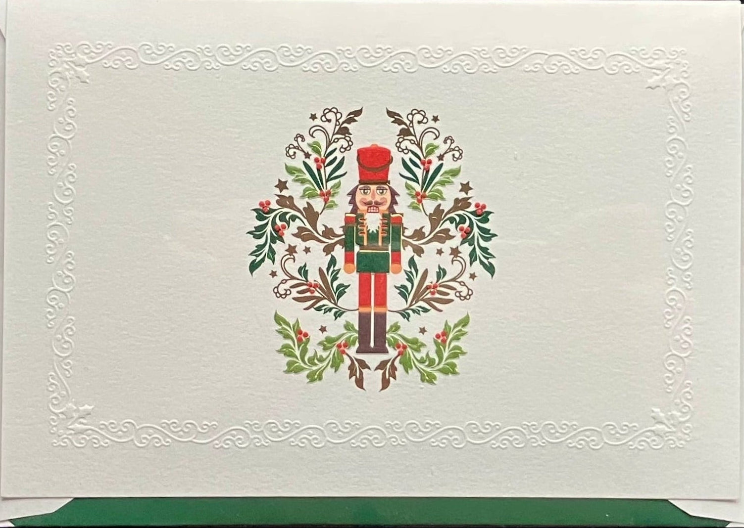 Send warm wishes with this elegant holiday stationery handcrafted entirely in Florence, Italy. Each card and envelope is meticulously crafted with gold foil stamped highlights and a delicately embossed border.