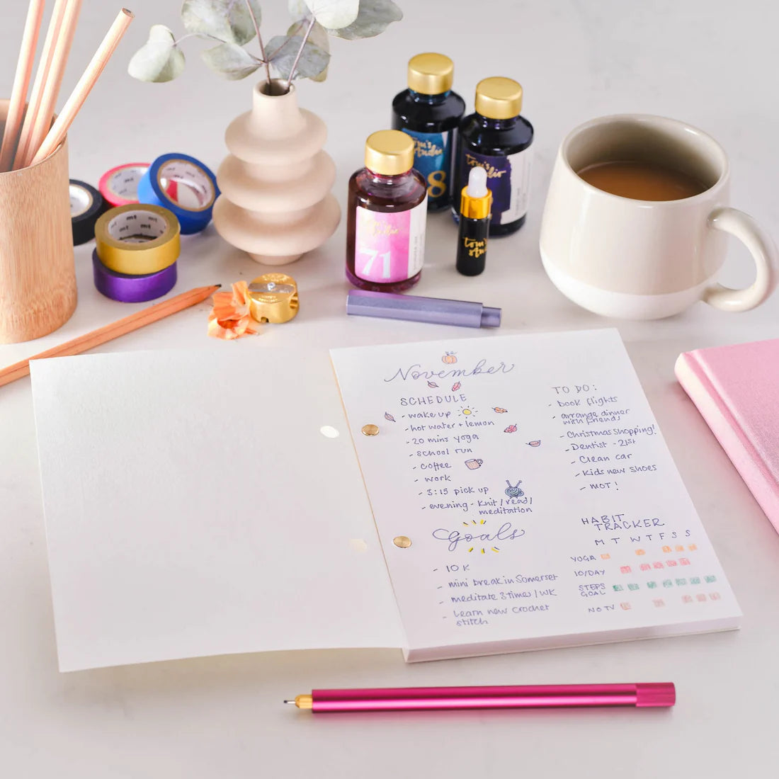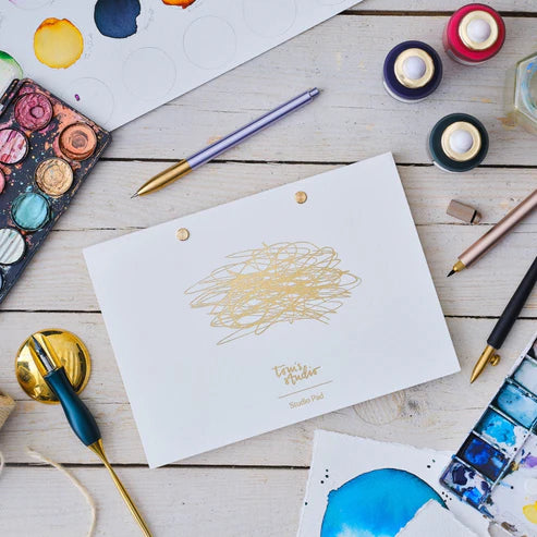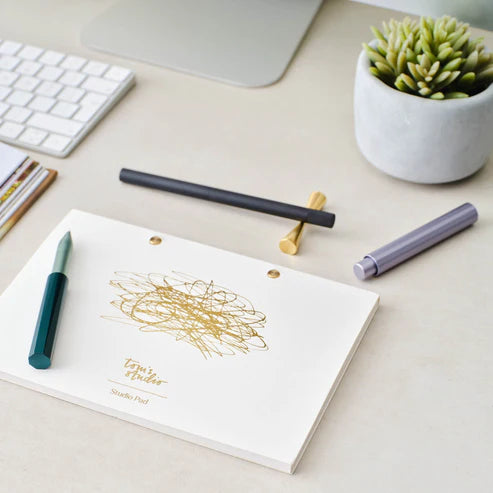 The Studio Pad offers creative freedom and seamless organisation, serving as a journal, sketchbook, planner, or to-do list. Designed to capture your best ideas without the clutter, its tear-out pages allow for easy archiving with spare studs and cover, or simple recycling of completed tasks.